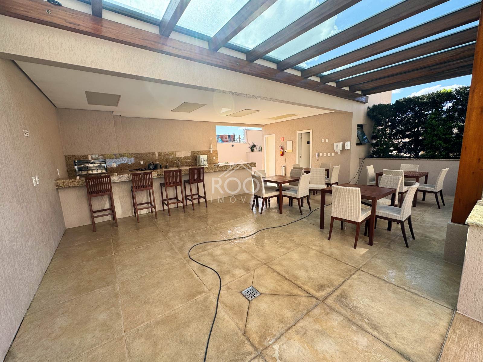 Churrasqueira interna e varanda espaçosa para momentos de lazer e relaxamento