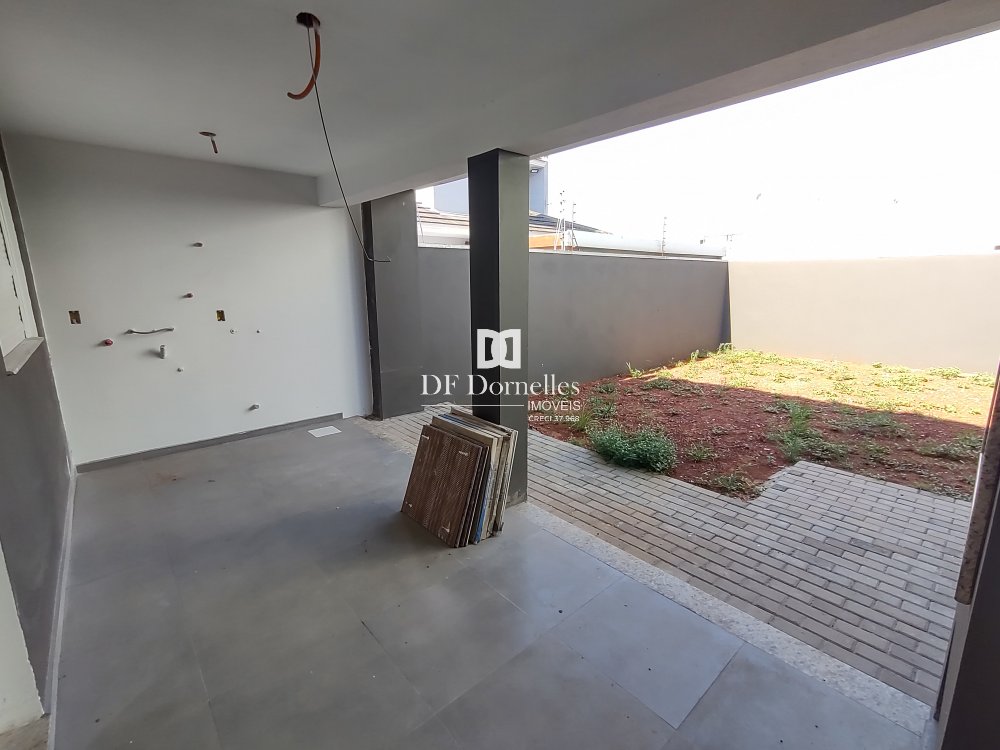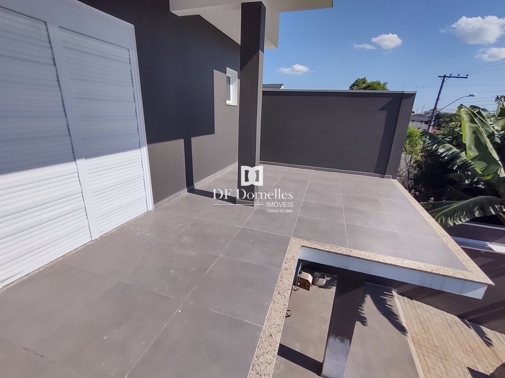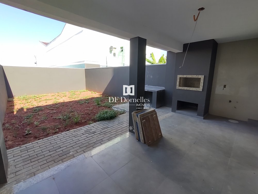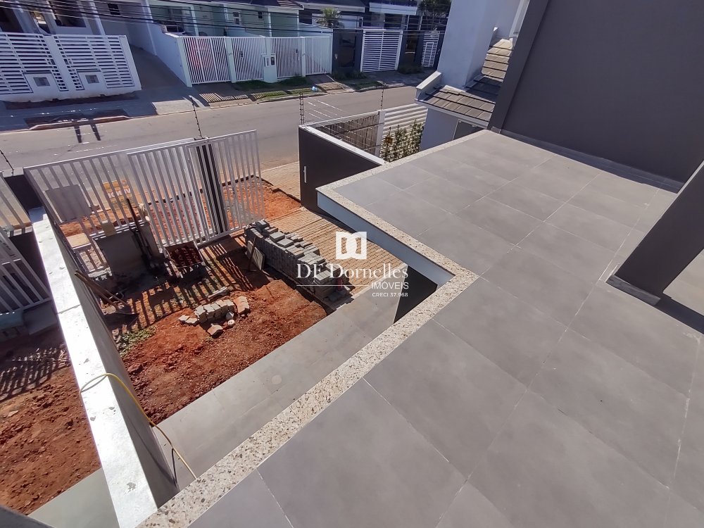 São 03 dormitórios, sendo 01 dormitório no térreo e no segundo pavimento são 02 amplas suítes com sacadas e terraço, àrea coberta com churrasqueira, ótimo acabamento com piso térreo em porcelanato e aberturas em PVC. O pátio fechado nos fundos também é um grande diferencial com 56m² !!