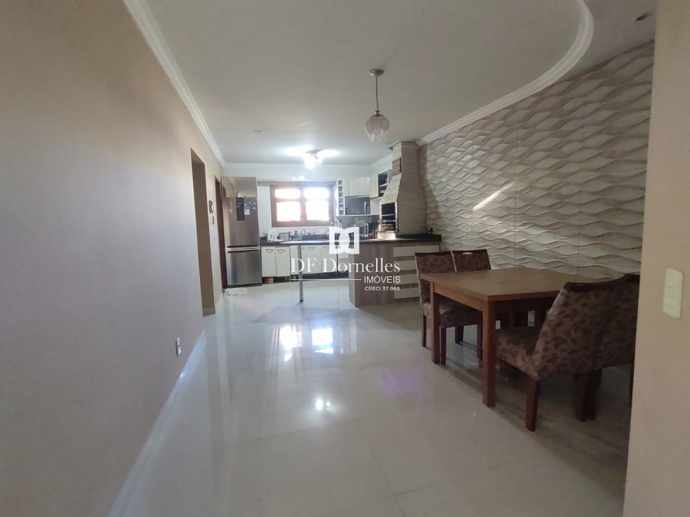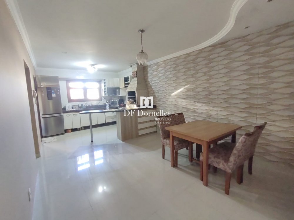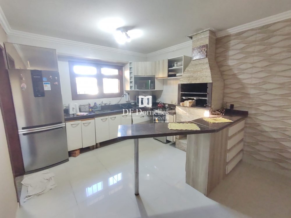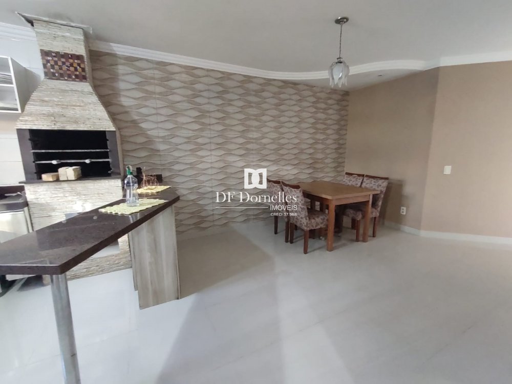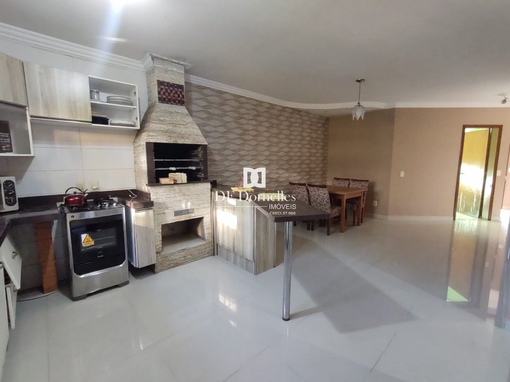 São 145m² construídos em terreno de 300m², possui uma suíte + dois dormitórios + banheiro social, sala de estar com lareira, sala de jantar integrada com a cozinha, churrasqueira na cozinha e outra na garagem, água com aquecimento solar e elétrico, garagem fechada para 02 carros e cabem outros no pátio, lavabo. Imóvel com grande estilo, muito bonito e bem construído. Aberturas em madeira nobre e com telas mosqueteiras, laje em concreto, estruturada para um segundo pavimento. Ficará semi-mobiliada.