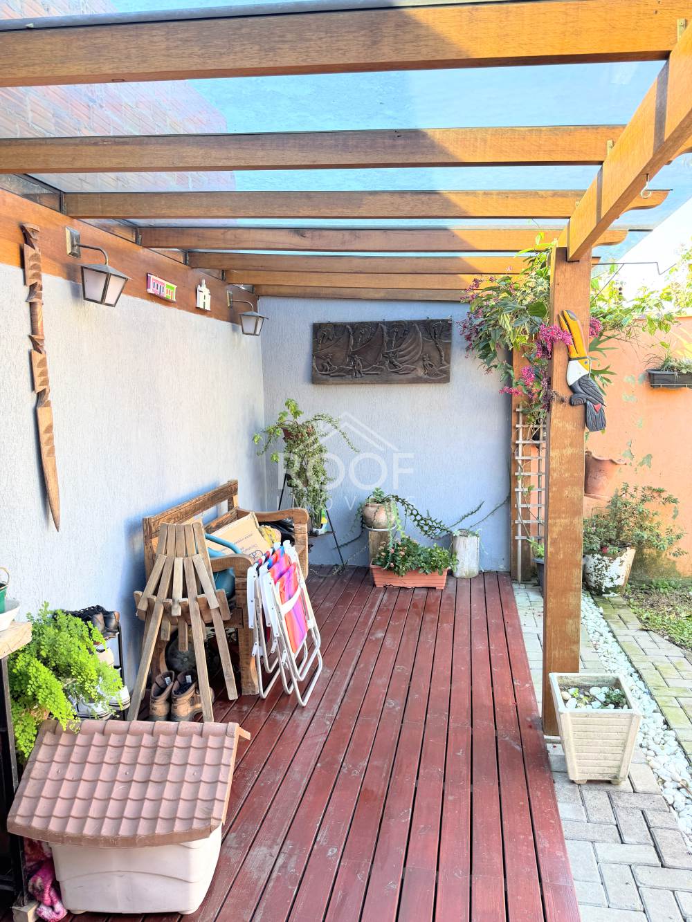 Construída com laje e madeiras nobres nas áreas internas e aberturas, a casa combina solidez estrutural com sofisticação nos acabamentos. O amplo pátio frontal conta com árvores frutíferas, trazendo sombra e frescor ao ambiente. Nos fundos, há um espaço gourmet com churrasqueira, perfeito para reunir amigos e familiares.