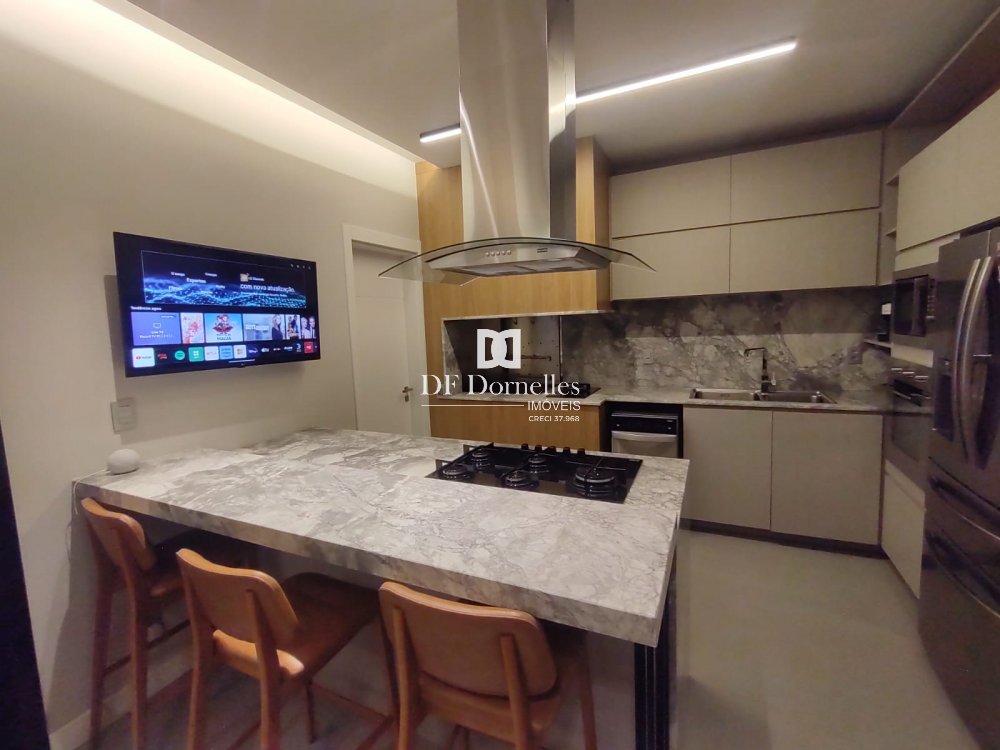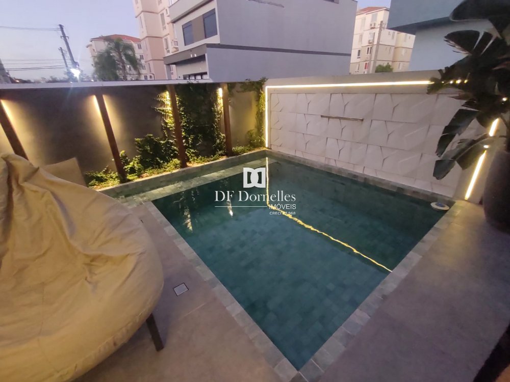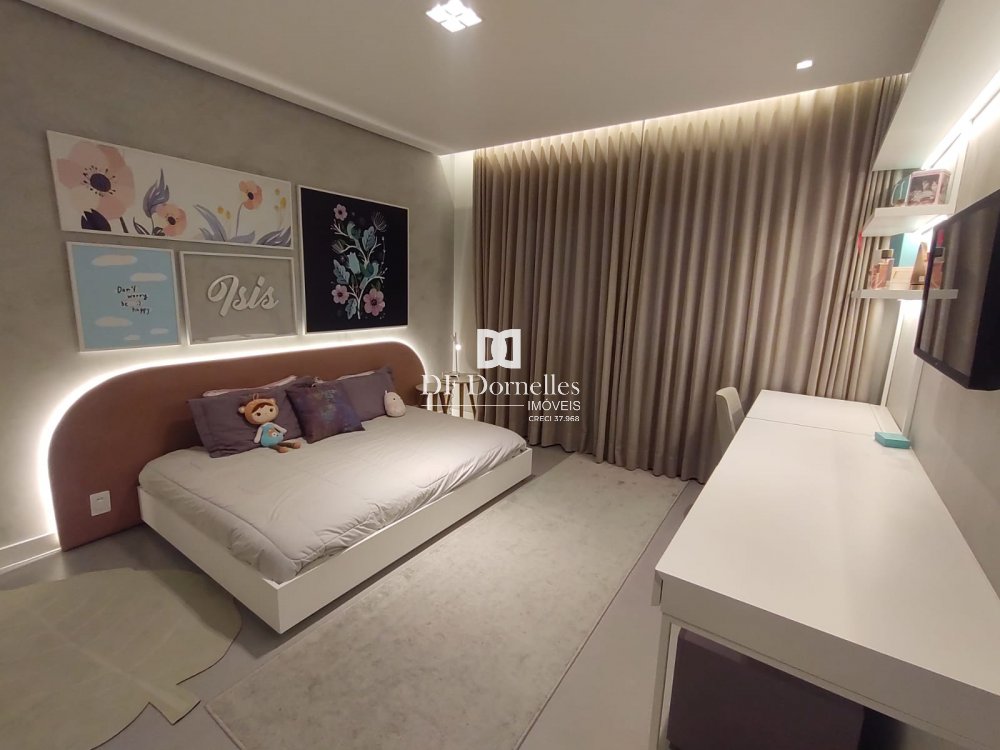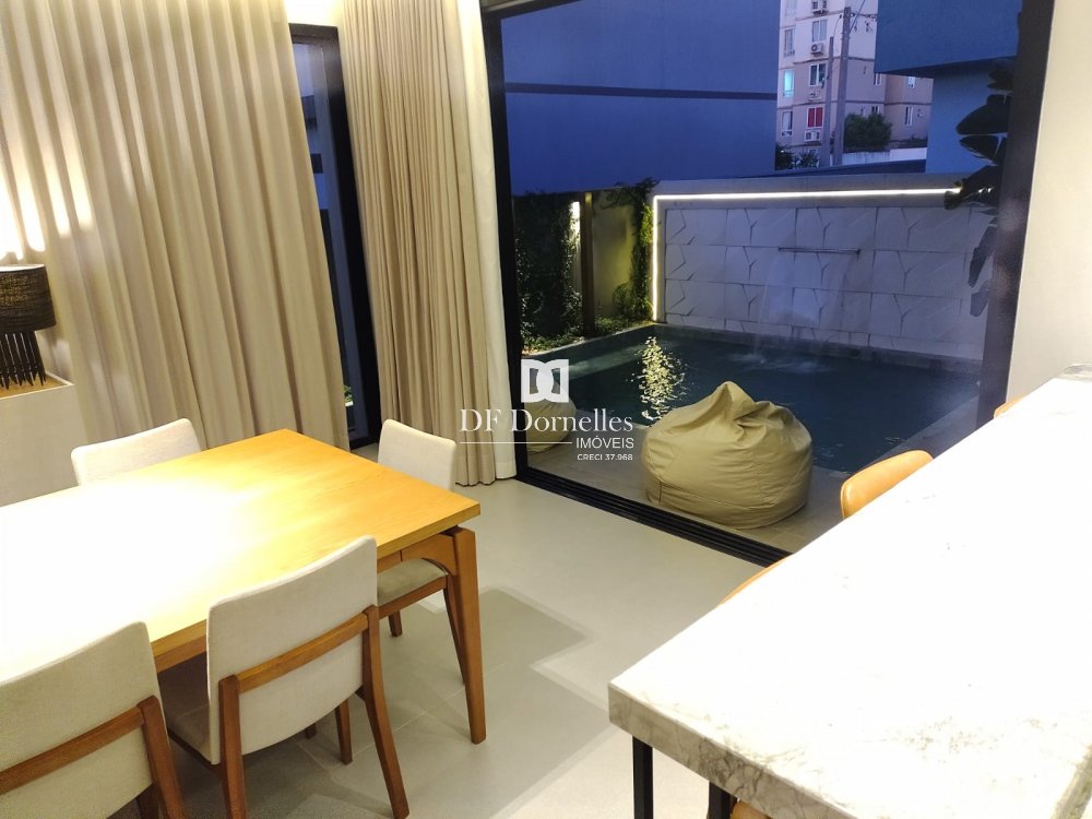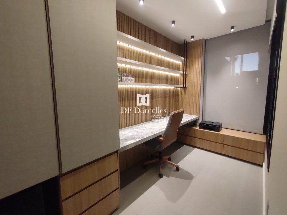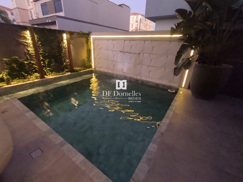 Impecável, muito bem planejado e finamente executado em todos detalhes... São 04 dormitórios (uma suíte com closet), banheiro social, lavabo, escritório, ampla sala de estar com lareira, sala de jantar integrada a cozinha, ampla e linda churrasqueira, piscina aquecida com espaço solarium, lavabo de apoio para a piscina, lindos detalhes de iluminação em Led. Ficará totalmente mobiliada!!